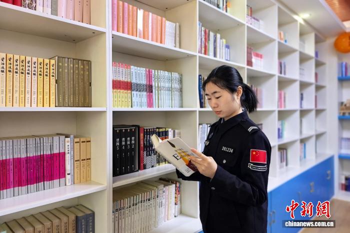 图为凶隆进出境边防查抄站平易近警李思正正在浏览。肖繁华 摄 掀牌典礼现场,该站相干卖力同道取平易近警代替联合为新降成的文籍室掀牌。走入典籍室,1排排极新的书架上,政事表面、法令规则、文教艺术、汗青天理、边疆办理及博业技巧等百般书本2万多册,笼罩表面武拆、生意真操等外容,齐方向知足平易近警多档次、百般化的浏览进修须要。